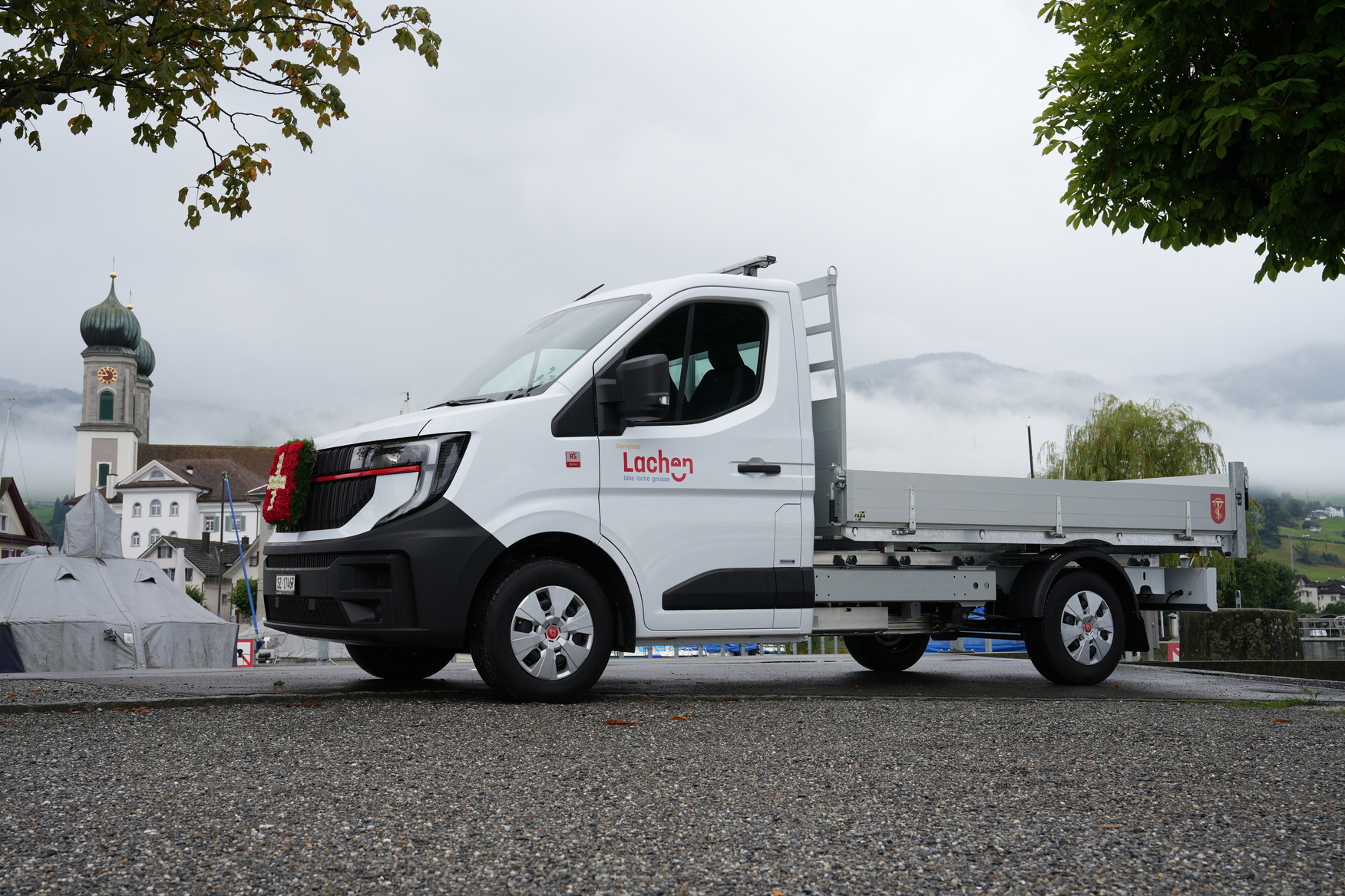 Die Gemeinde Lachen/SZ erweitert ihren Fuhrpark im Bereich Bau und Umwelt (Werkhof) um ein vollelektrisches Nutzfahrzeug: Ein Renault Trucks Master E-Tech mit 3-Seiten-Alu-Kipper wurde von Thomann Nutzfahrzeuge an den Neukunden ausgeliefert. Das Fahrzeug wird künftig für den Unterhalt der Gemeindeflächen eingesetzt und leistet einen wichtigen Beitrag zur nachhaltigen Mobilität der Gemeinde.