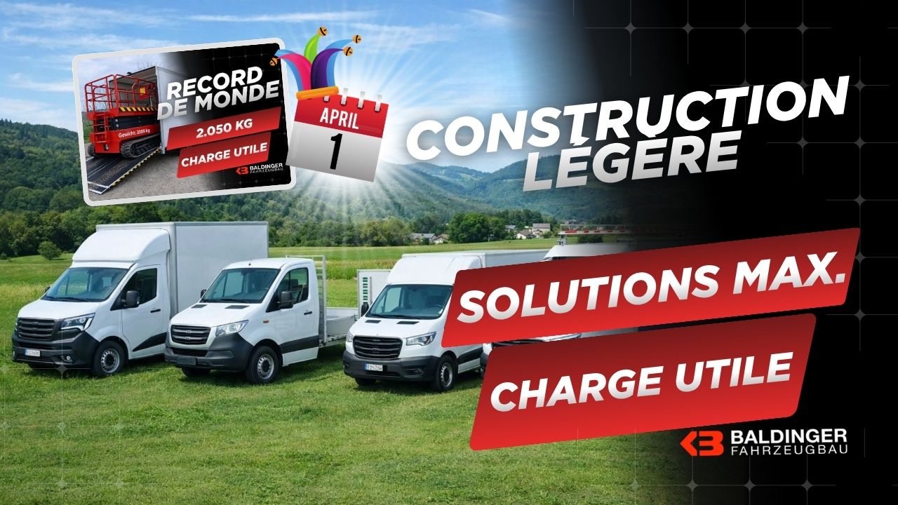 L'annonce faite par Baldinger le 1er avril concernant des fourgons d'une charge utile de 2 050 kg était un poisson d'avril. L'entreprise revendique néanmoins une charge utile nettement supérieure dans le segment des fourgons. Et ce, depuis son nouveau site ouvert fin mars 2026 : Carrosserie Baldinger AG, Usine 2, Porte 21, Bahnhofplatz 11, 8908 Hedingen