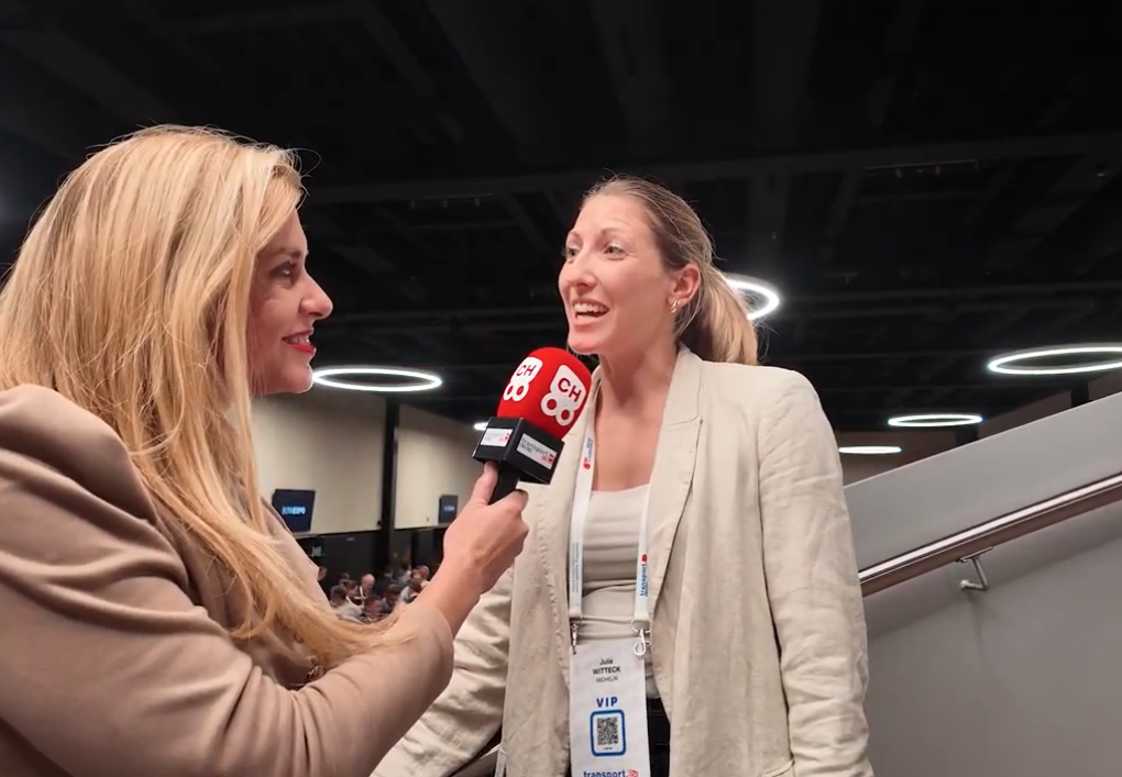 Lors de transport.ch, la présentatrice Monika Erb s’est entretenue avec Julia Witteck, Customer Marketing Manager chez Michelin, au sujet des tendances du secteur, de l’échange professionnel et du rôle clé du salon.
